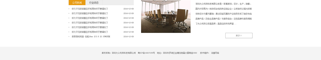 深圳大众利邦科技有限公司是一家集策划、设计、生产、销售、国内外贸易为一体的综合性的供应链企业。公司始终以强大的策划和设计力量为基础,通过日益完善的产业链条,形成了诸多知名品牌产品(及自主品牌产品)与服务组合,这些品牌与服务铸就了大众利邦公司高品质、高品位的市场声誉。透过区域营销网络,打造完善的信息整合、物流配送平台,供应网络覆盖国内外各分支终端。